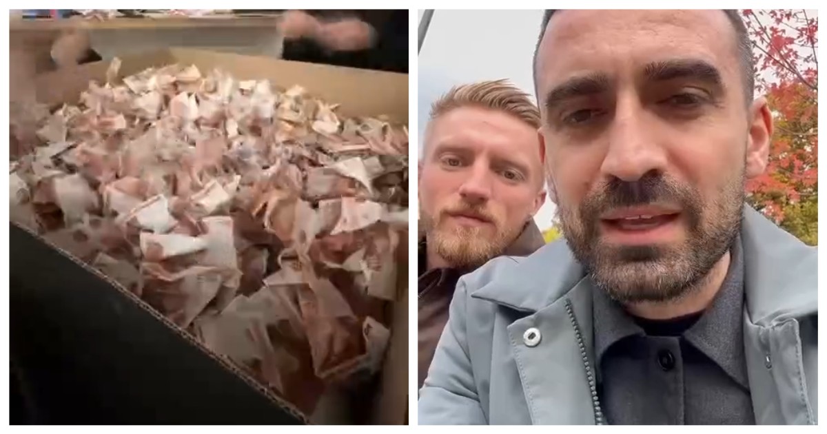 Парни подшутили над своим другом, у которого недавно была свадьба. Они подарили ему коробку с деньгами, большая часть которых оказалась фальшивой.