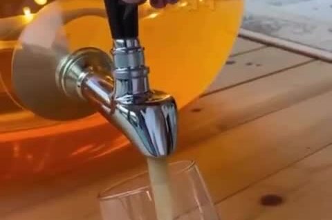Парень похвастался необычной ёлкой, установленной в его доме. Она представляет собой стеклянный сосуд для пенного напитка с краном для розлива.