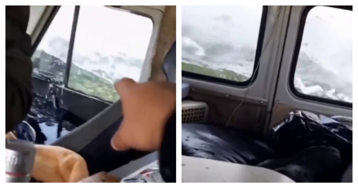 Пассажир заполняющегося водой УАЗа решил обсудить со знакомым "красивое дно". Спустя несколько секунд мужчины всё-таки решили покинуть транспортное средство.