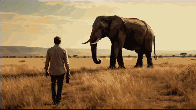 В сети появилось видео, где слон бежит на мужчину, но тот спокойно поднимает руки вверх и замирает на месте. Неожиданно для зрителей животное останавливается и отходит в сторону.