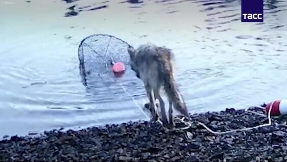 Ученые из США и Канады с помощью фотоловушек засняли, как молодая волчица заходит в воду, зубами вытягивает на берег сеть и съедает находящуюся в ней рыбу.
