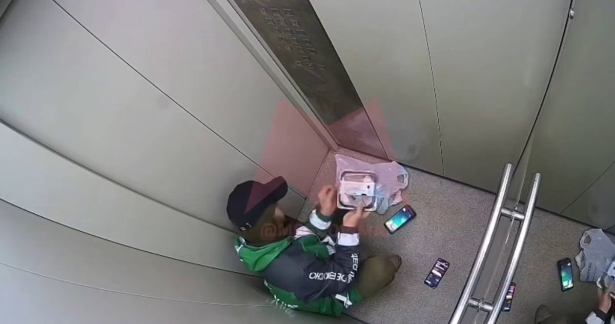 Камера наблюдения в лифте жилого дома в Москве запечатлела довольно неприятное зрелище. Курьер поковырялся в носу, после чего грязными пальцами потрогал чужой торт.