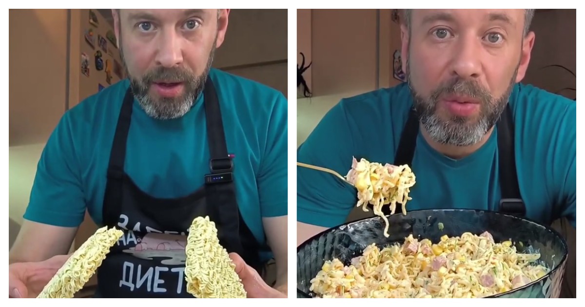 Мужчина приготовил необычный салат, который якобы был популярен в нулевых. Слышали когда-нибудь о таком салате?