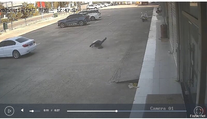Житель Китая вышел из здания и увидел маленькую собаку. Он заметил, что животное боится людей и решил усилить этот эффект.