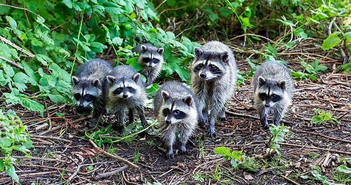 Когда енотов обнаружили, они застыли каждый в своей позе, пытаясь слиться с местностью.