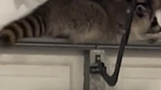 Жители США услышали странный шум из гаража и решили проверить. Они включили свет и обнаружили банду енотов.