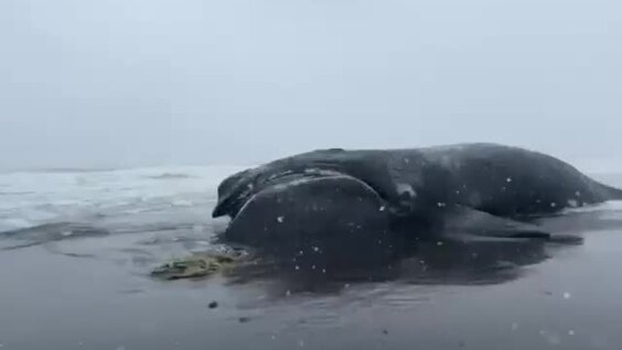 На побережье Камчатки обнаружили мёртвого японского кита. Редкий двадцатиметровый гигант мог запутаться в сетях.