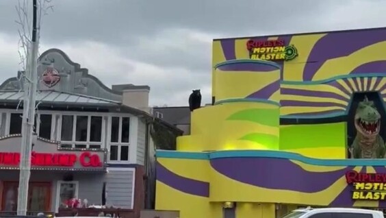 В курортном городке Гатлинбург местные жители заметили медведя, усевшегося прямо на крыше театра. Для его спасения вызвали сотрудников Агентства по охране природных ресурсов, которые аккуратно сняли животное и отвели в безопасное место.