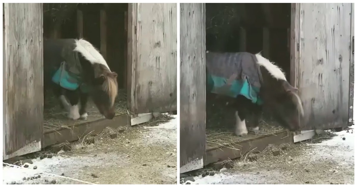 Пони долго не мог решиться на прыжок. В какой-то момент он смог собрать всю свою смелость и преодолел страх.