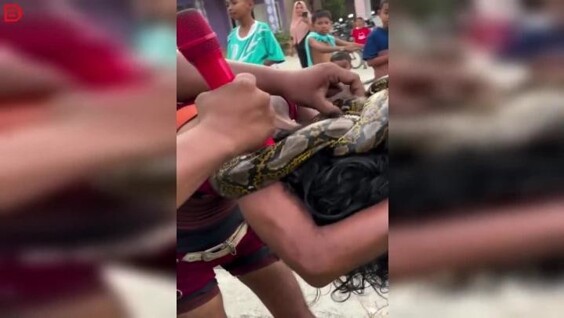 Мужчина оказался в смертельной опасности, когда змея обвила его шею. К счастью, ему быстро пришли на помощь, и он сумел освободиться от опасного пресмыкающегося.