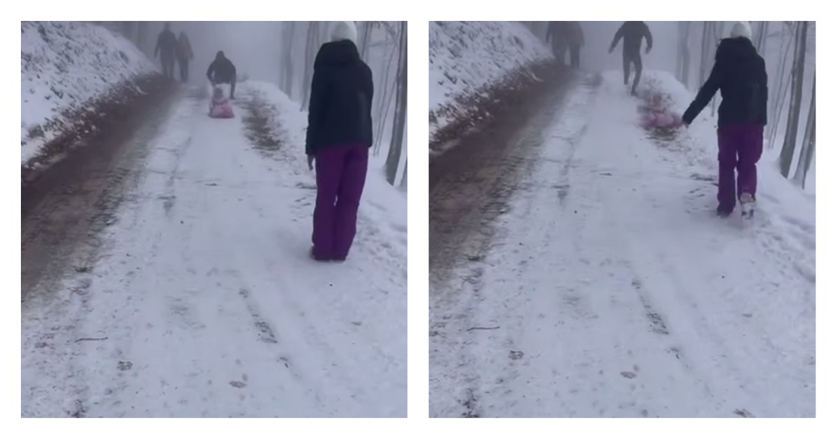 Девочка едва не получила травмы, катаясь с горки на лесной дороге. Ситуация потребовала немедленного вмешательства взрослых.