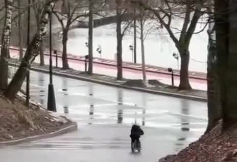 Женщина сняла на видео, как её ребёнок съезжает на беговеле с Воробьёвых гор. Мальчик смог вырулить и не упасть. Похоже, для него подобный спуск не первый.
