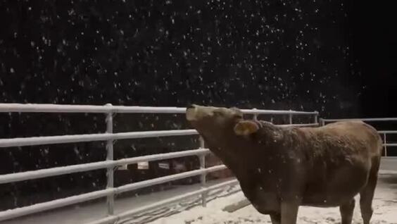 Корова впервые в жизни увидела снег. Она попыталась языком поймать снежинки.