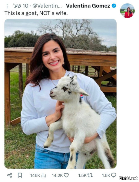 "Валентина Гомес, кандидатка в Конгресс США от республиканцев (выступающая с антиисламистской позицией), объясняет новому мэру Нью-Йорка: «Это КОЗА, а не ЖЕНА»