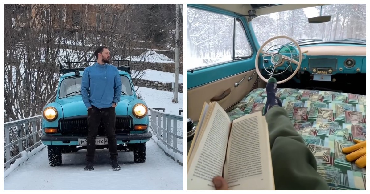 Для него эта классика — не просто машина, а способ сменить ритм. Он уезжает на ней в лес, ездит за подарками или просто сидит внутри с книгой. Настоящий ретро-ритуал спокойствия.