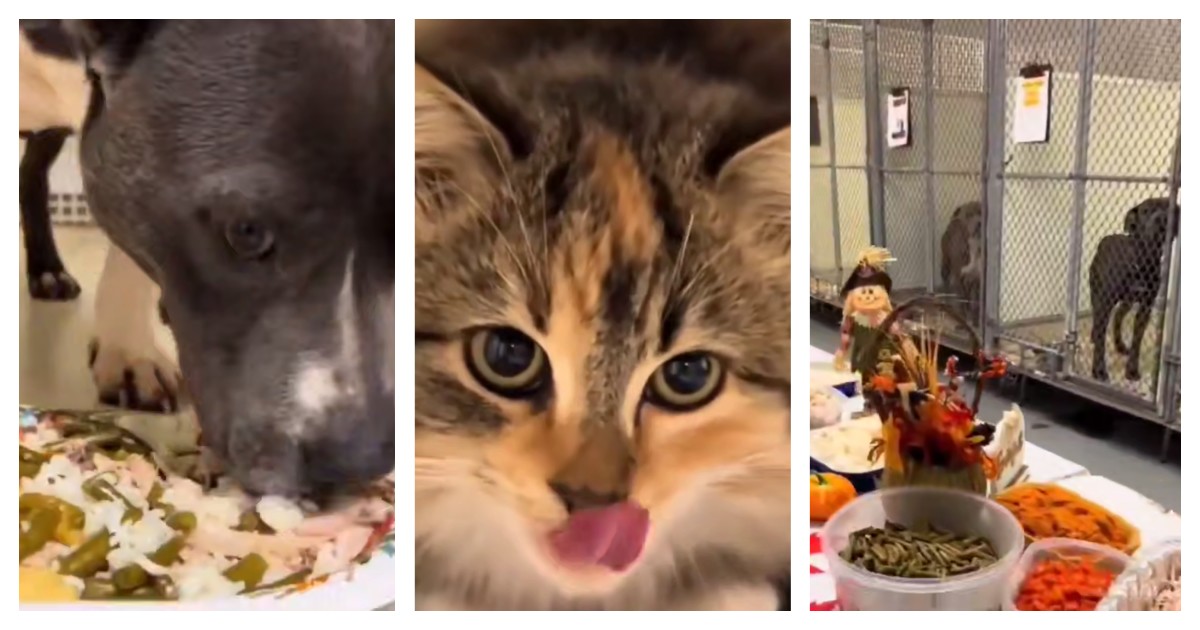 В Северной Каролине один из приютов для животных устроил своим подопечным праздник живота. В честь Дня благодарения собакам и кошкам подали особый ужин.