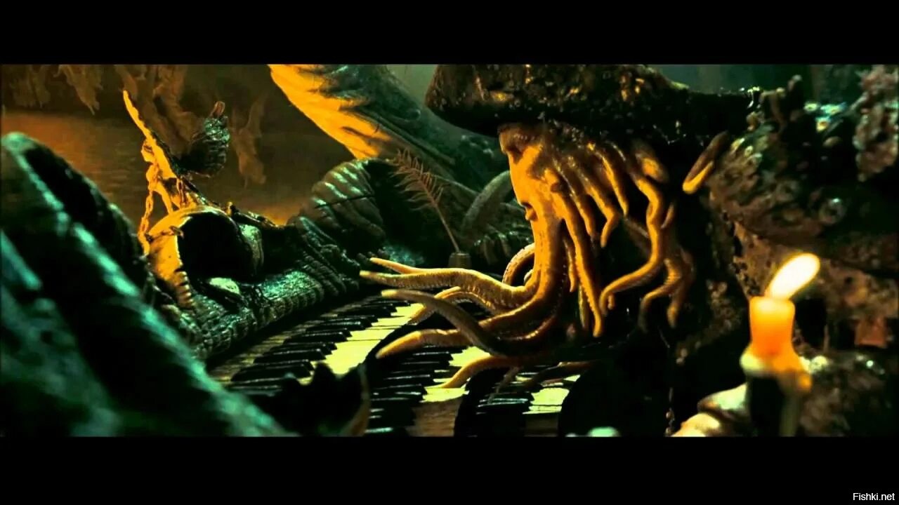 Осьминог играет на фортепьяно, потом на гитаре, скрипке, саксофоне и т.д....