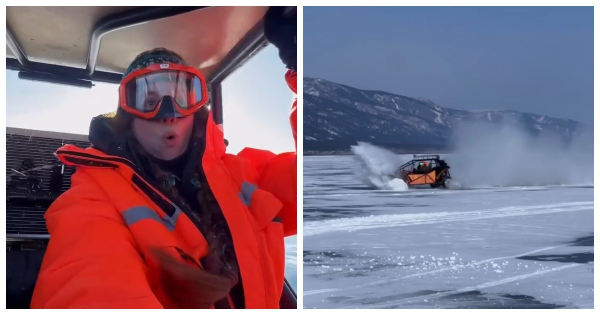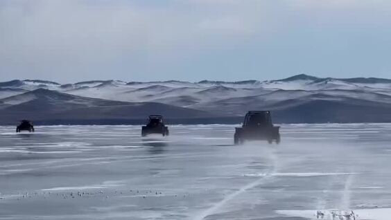 Молодые люди отправились на Байкал, чтобы испытать багги прямо на поверхности озера. На видео видно, как они мчатся по гладкому льду, над которым стелится морозный туман, а под прозрачной толщей видны трещины и глубокие синие пласты байкальского льда.