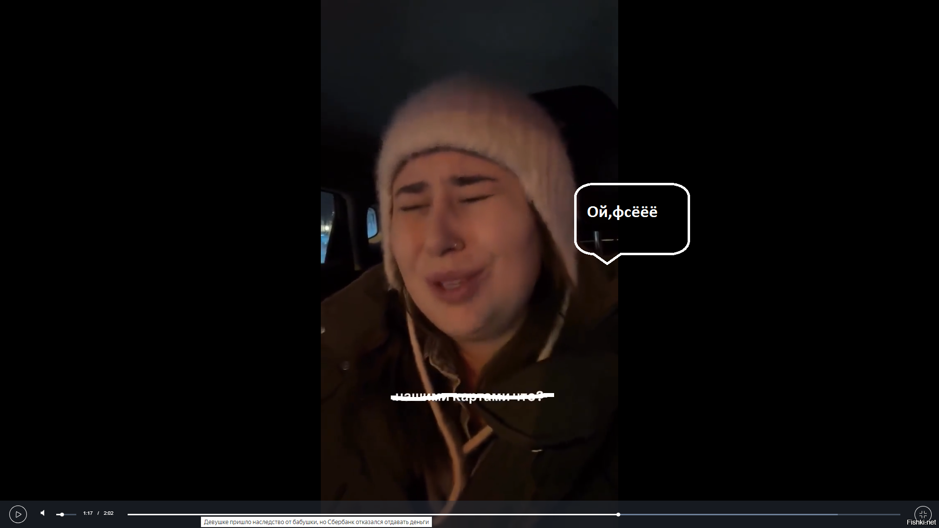 3) Она приехала в Сбер с доками, ей "не могут снять деньги, вообще ничего не могут, не могут перевыпустить карту, там какая-то не такая, какой-то ФЗ..." - поток сознания не замутнённый разумом....