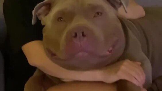Суровая внешность булля по имени Туктук очень обманчива, на самом деле – этот «малыш» настоящий добряк, который любит посидеть на ручках.