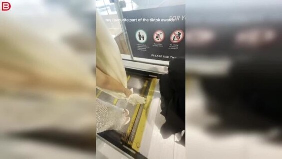 Девушка взяла платье напрокат для важного мероприятия, но часть наряда застряла в эскалаторе. Девушке пришлось обратиться за помощью, чтобы выбраться и сохранить оставшуюся часть платья.