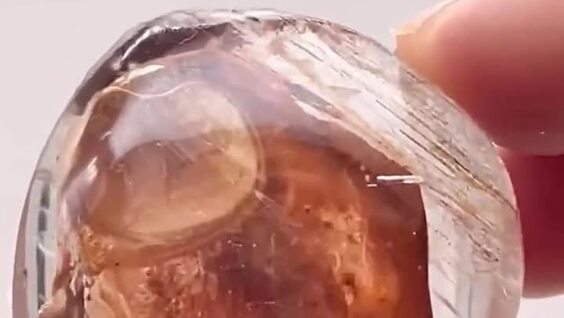 Перед вами энхидро-кварцевый кристалл. Внутри таких минералов заключены песок и вода, сохранившиеся там в течение миллионов лет. Содержимое таких кристаллов может рассказать о составе древних морей, атмосфере прошлого и даже о том, как выглядела Земля задолго до появления человека.