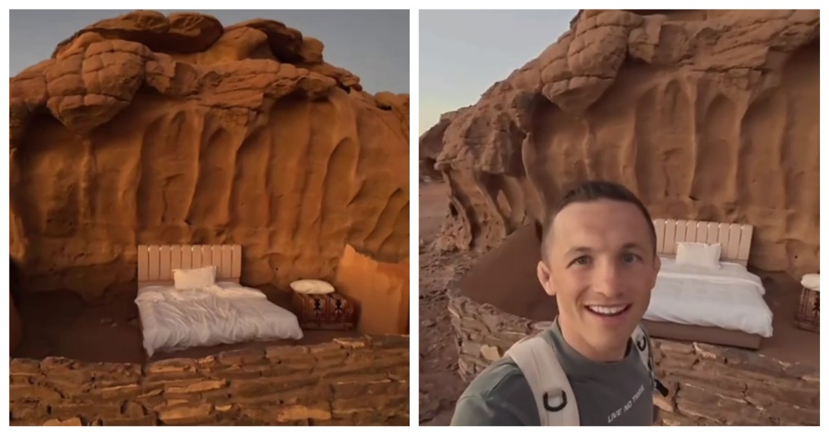 Парень снял довольно странное жилье на Airbnb — кровать прямо посреди пустыни. Данный одноместный "отель" находится в Вади-Рам в Иордании и стоит $40 (более 3000 рублей) за ночь.