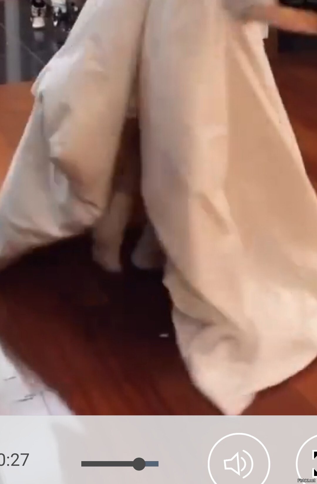 Девушка продемонстрировала чёткий хороводный шаг, несмотря на то что была полностью закутана в одеяло — выглядит и забавно, и впечатляюще.