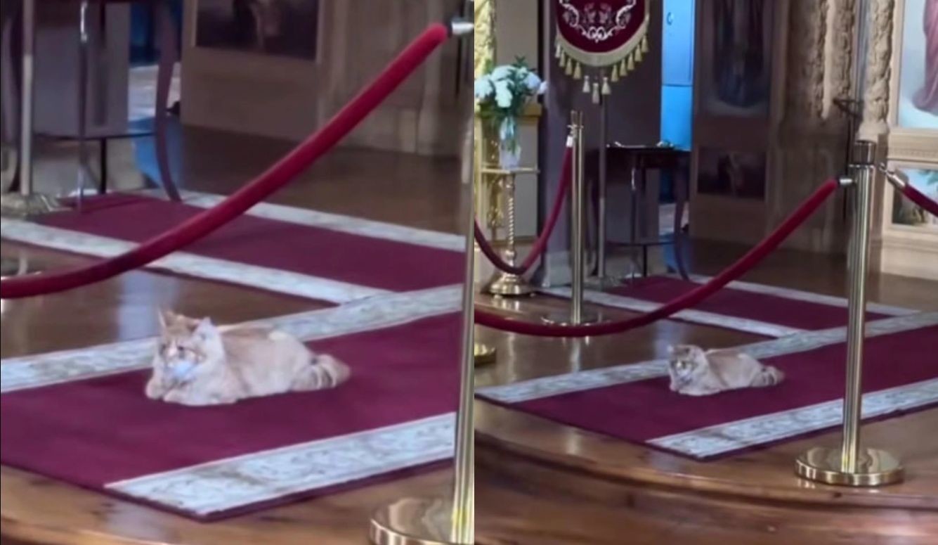 Пушистый обитатель храма внимательно присутствует на службах почти два часа, наблюдая за происходящим рядом с прихожанами. После этого кот спокойно уходит вместе с батюшкой, словно настоящий помощник прихода.