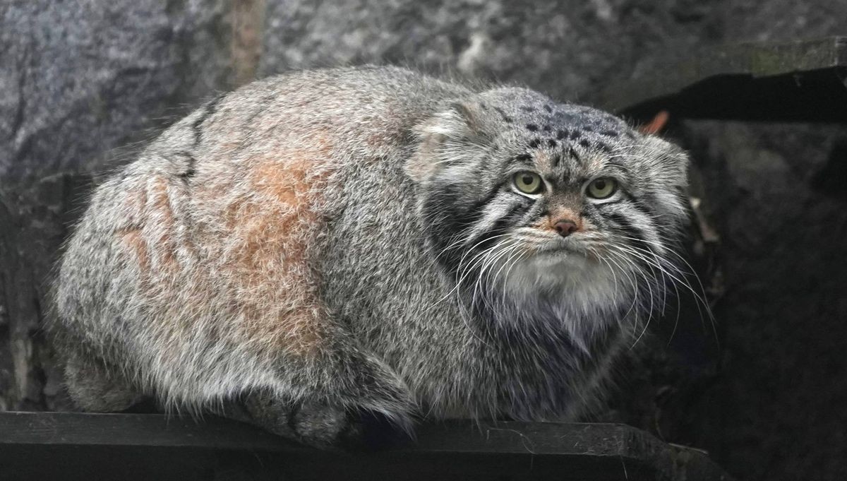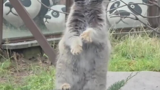 Сотрудники Московского зоопарка подготовили для толстенького манула Тимофея развлечение: еда в подвешенном мешочке. Хищный кот не оставил мешок без внимания.