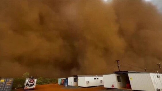 "В воскресенье во второй день подряд песчаная буря пронеслась над одним из крупнейших подземных золотых рудников Австралии в отдаленной пустыне Танами"