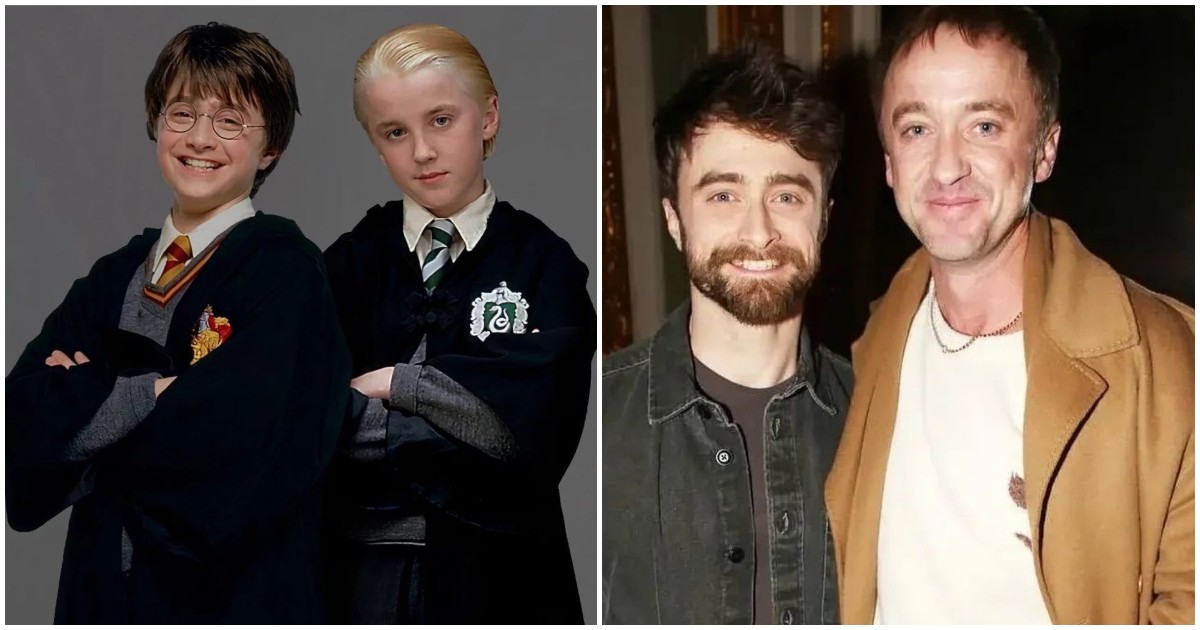 Актёры Дэниел Рэдклифф и Том Фелтон, сыгравшие юных враждующих волшебников в фильмах о Гарри Поттере, встретились на показе пьесы «Весело мы катимся». Рэдклифф играет в ней главную роль.