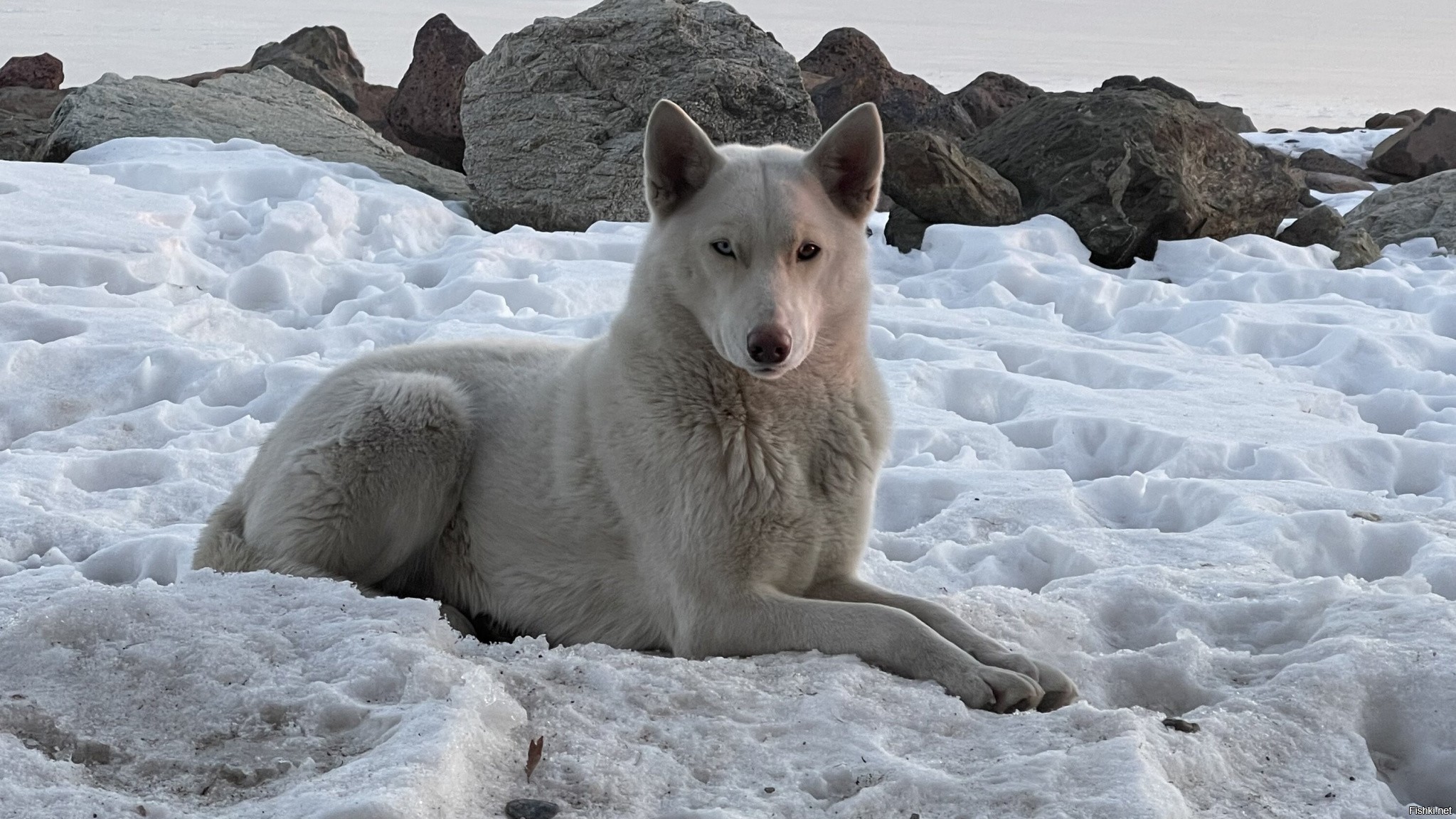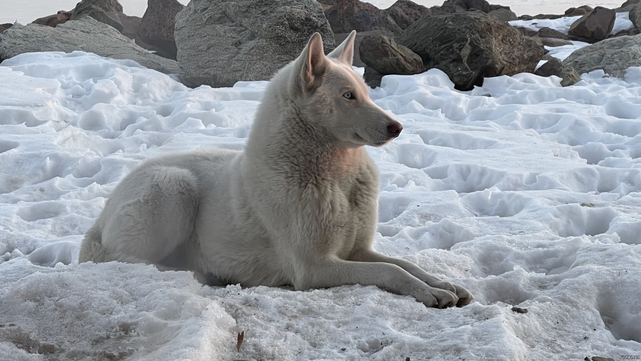 Редкие кадры из дикой природы — полярная волчица рядом со своим малышом. Нежный момент, который нечасто удаётся увидеть.