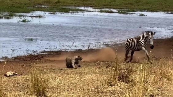 После этого леопард повторил попытку снова, но зебра опять сумела отбиться от него. Тогда хищник сдался и ушел.