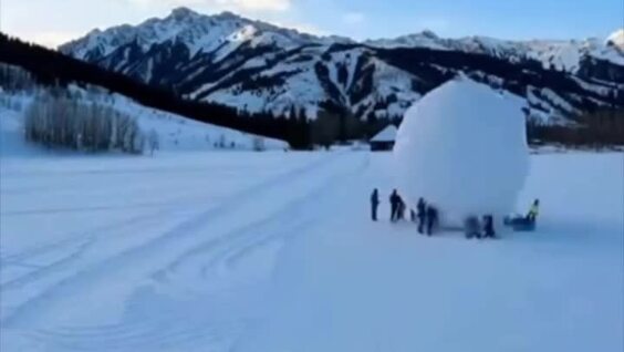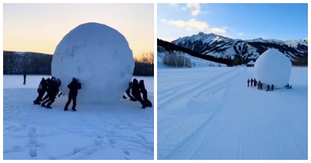 В итоге диаметр снежного «монстра» достиг впечатляющих 13 метров.