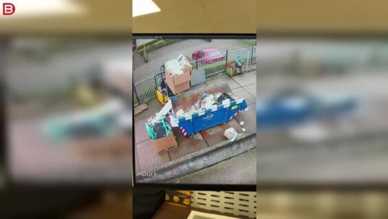 Водитель погрузчика попытался загрузить большой ящик со строительным мусором в контейнер. Задача казалась простой, но ящик оказался непростым соперником.