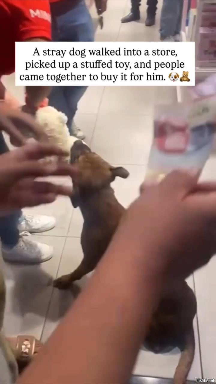 В мексиканском магазине бездомная собака нашла игрушку, которая ей так понравилась, что она отказывалась выпускать её из пасти. Неравнодушные прохожие скинулись и подарили четвероногому другу долгожданную игрушку.