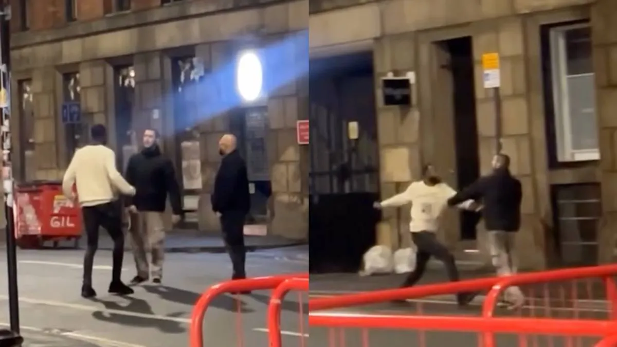 В Манчестере на улице произошёл конфликт: один из участников не смог ударить ногой, но применил кулак против оппонента. Пострадавшие серьёзных травм не получили, инцидент длился несколько секунд.