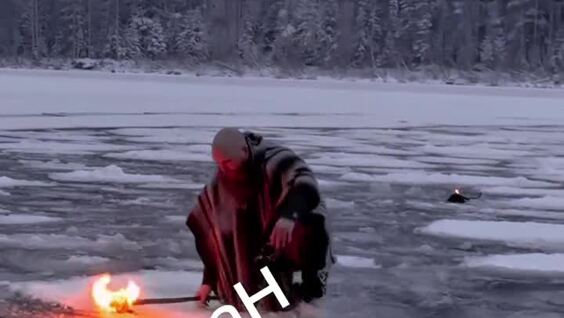 Мужчина устроил себе пробежку по льдинам на водоёме. В следующий раз может так не повезти.