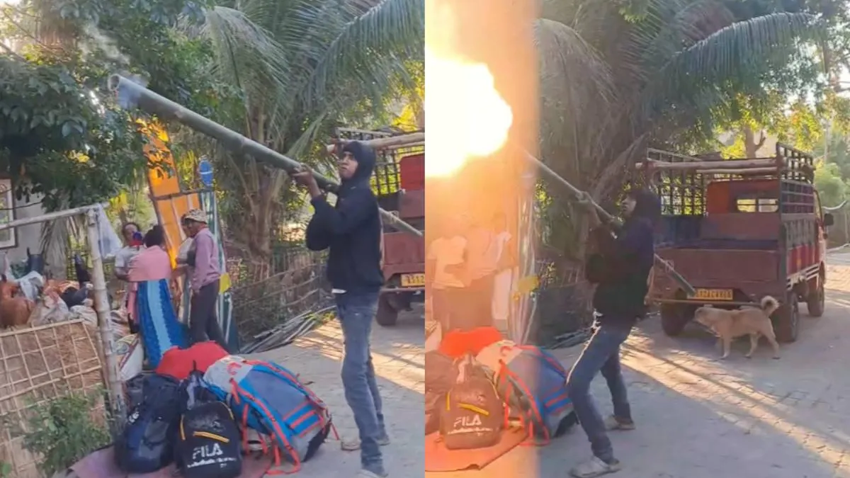 На видео показан эксперимент с использованием стебля бамбука для запуска снаряда. В ходе испытания бамбук не выдержал давления и разрушился, продемонстрировав свои ограничения в такой роли.