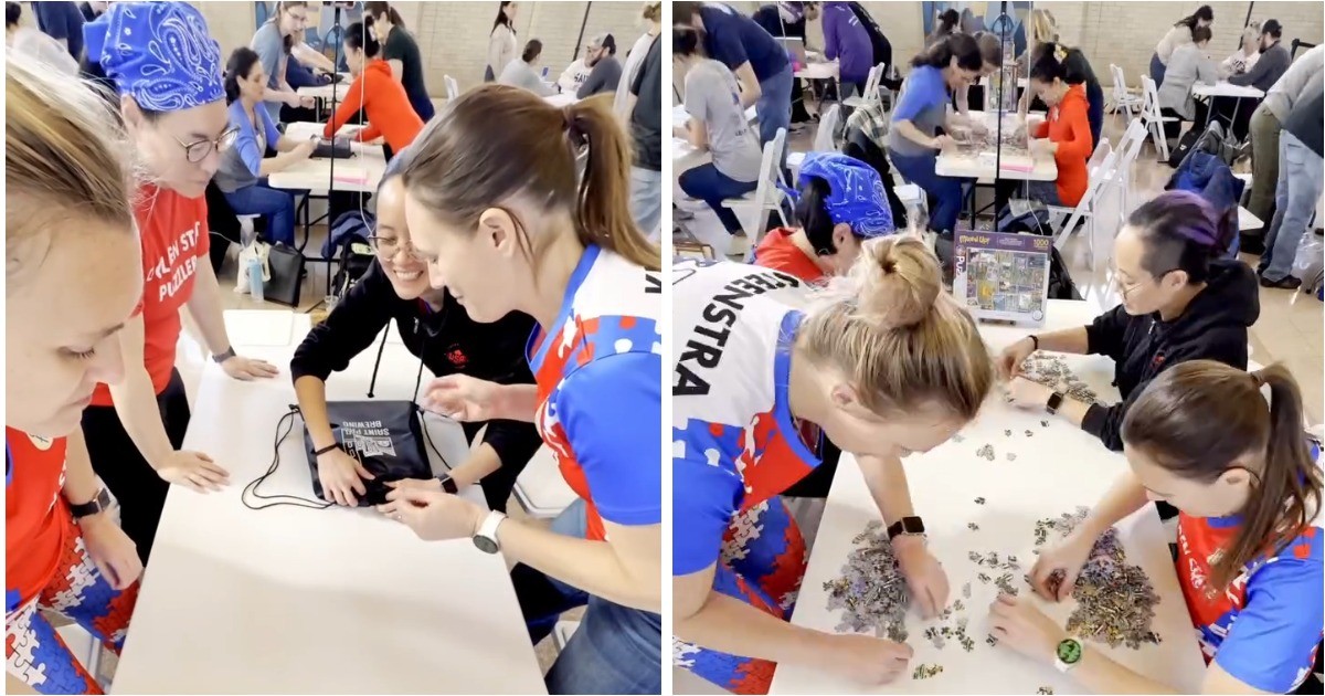 Команда спидпазлеров Golden State Puzzlers из Калифорнии приняла участие в ежегодном чемпионате США по скоростной сборке пазлов. Участники продемонстрировали высокую скорость, слаженную работу и мастерство, собирая сложные пазлы на время.