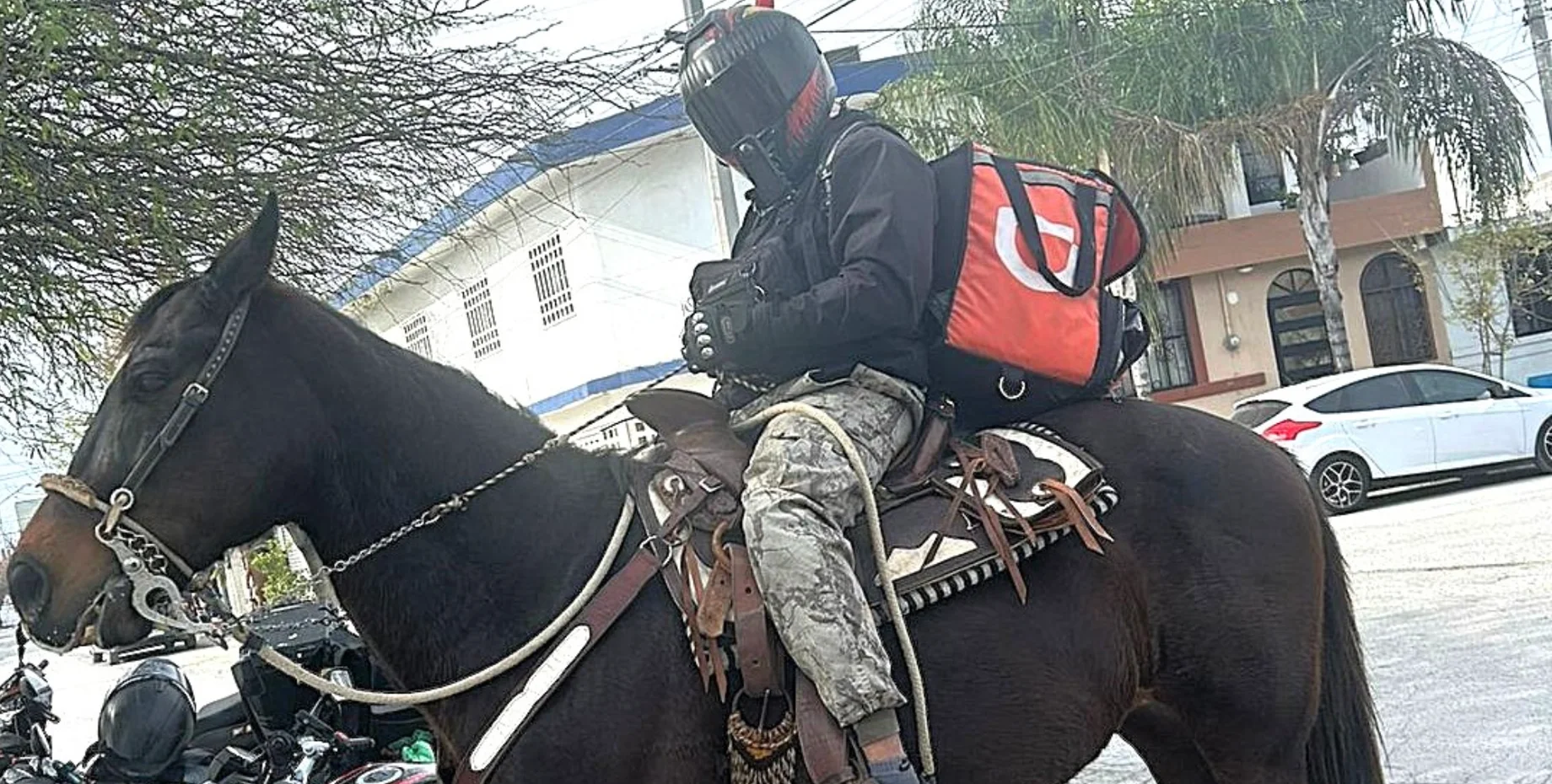 Жители северной Мексики стали свидетелями необычной доставки еды. Курьер выехал на заказ не на мотоцикле или велосипеде, а верхом на лошади.