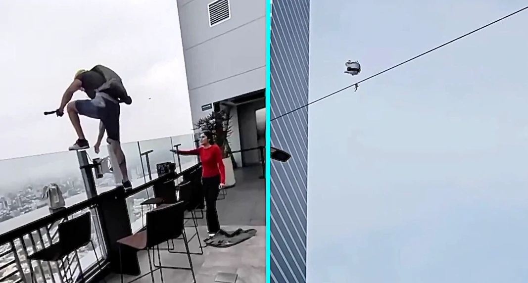 В Гвадалахаре бейсджампер совершил опасный прыжок с крыши бара на 41-м этаже небоскрёба, несмотря на мольбы сотрудников остановиться. После инцидента терраса бара была временно закрыта, а местные власти начали розыск экстремала за нарушение правил безопасности.