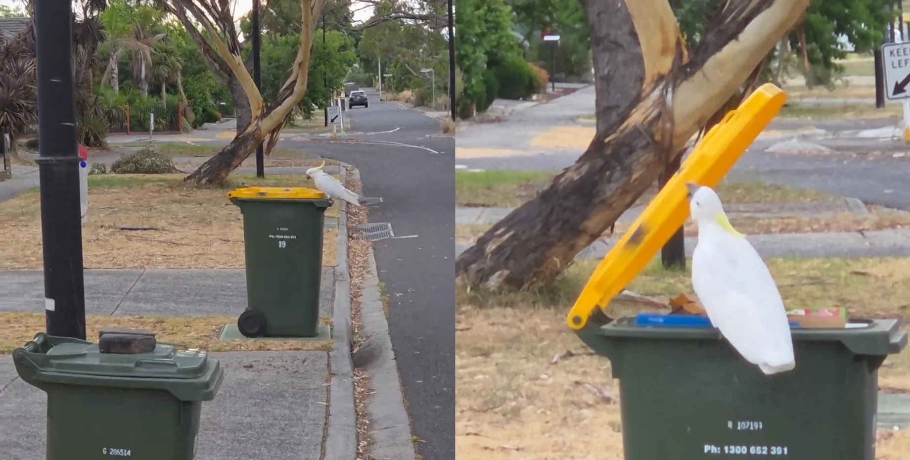 Оказалось, что к постоянному вреду в отношении отходов был причастен местный попугай, который лихо открывал бак и искал что-то ценное, разбрасывая остальной мусор.